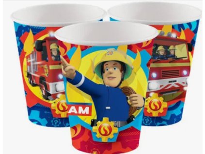 Papírové párty kelímky Požárník Sam, balení 8 ks – barevné kelímky s oblíbeným hrdinou na dětskou oslavu.