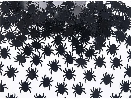 Konfety ve tvaru černých pavouků o velikosti 1,2 × 1,2 cm. Ideální doplněk na Halloween, strašidelnou párty nebo tematickou výzdobu stolu. Balení obsahuje 15 g.