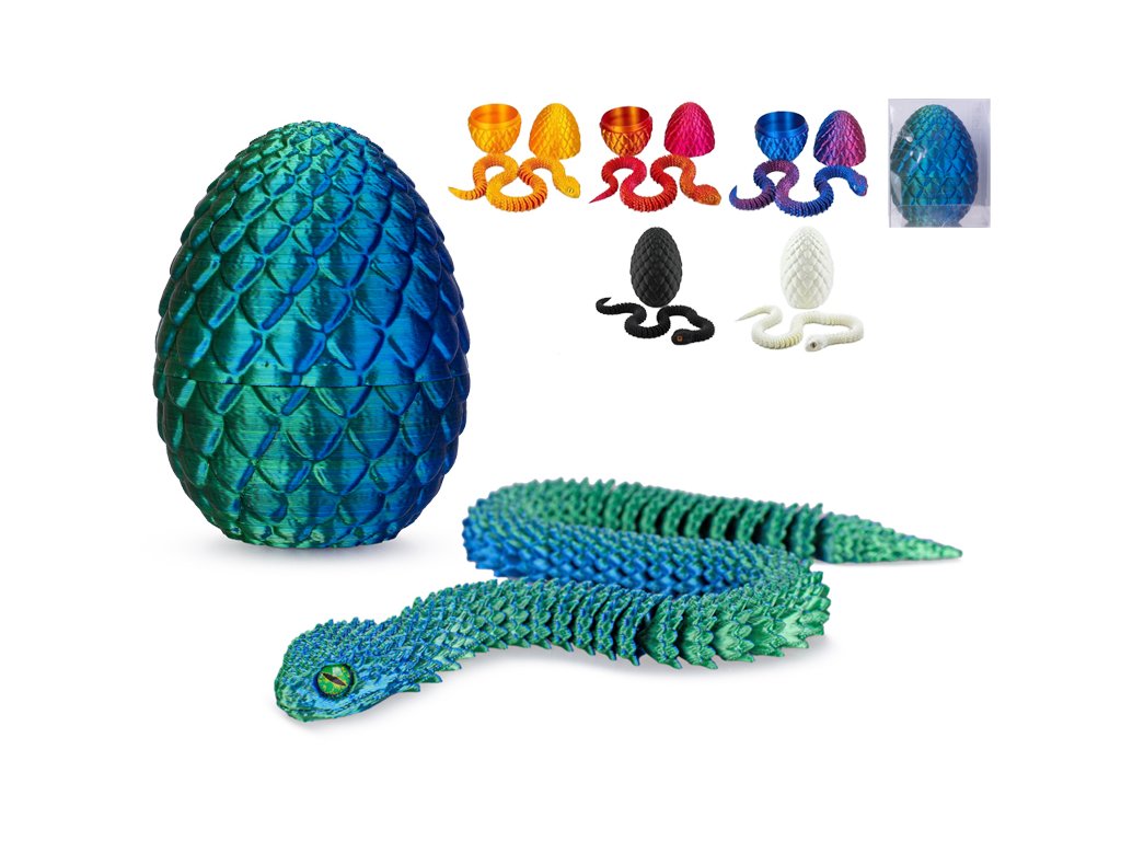 Objevte fascinující 3D Vejce s hadem! 🐍🥚 Tento unikátní 3D tištěný model má velikost 8,5 cm a uvnitř se skrývá had dlouhý 30 cm, který je detailně propracovaný a vyvedený v různých i metalických barvách, které působí realisticky a efektně.