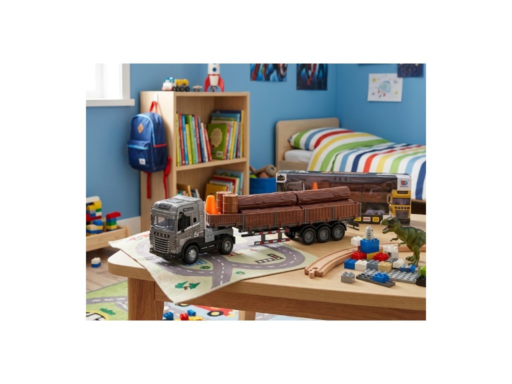 Představujeme Auto Přepravník na setrvačník 38 cm – detailní model přepravníku dřeva v měřítku 1:24, který potěší každého nadšence stavební techniky a modelů.