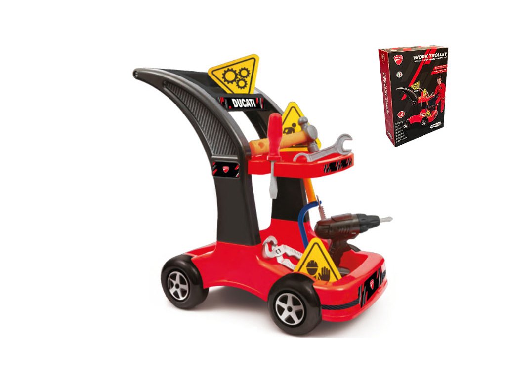 Staň se opravdovým mechanikem Ducati 🛠️🏍️! Tento autoservis vozík Ducati Work Trolley je navržen v ikonických barvách a designu značky Ducati a poskytuje dětem zábavný způsob, jak rozvíjet kreativitu, fantazii i jemnou motoriku.