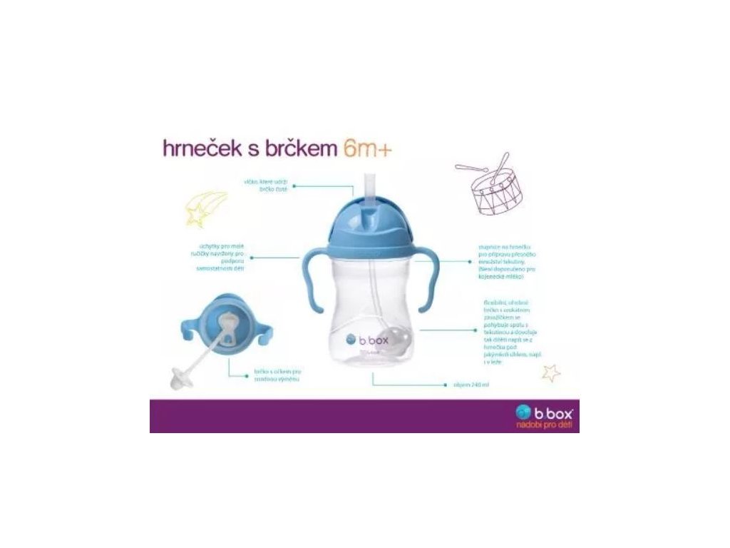 K tomuto produktu doporučujeme zakoupit náhradní brčka a kartáček. Hrneček s brčkem oceňovaný dětmi, rodiči i odbornou veřejností je zde v ještě lepším provovedení! Víčko je nyní v matné verzi a brčko má na spodním konci malou zátěž ve tvaru loga b.box. Díky této zátěži se brčko pohybuje spolu s nápojem a lze tak pít z hrnečku pod jakýmkoli úhlem. Jednoduché úchyty na hrnečku a snadné odklopení víčka podporují samostatnost vašeho dítěte. Dětský hrneček s brčkem od australské značky b.box je ideální při přechodu na pití z lahve na šálek nebo skleničku.