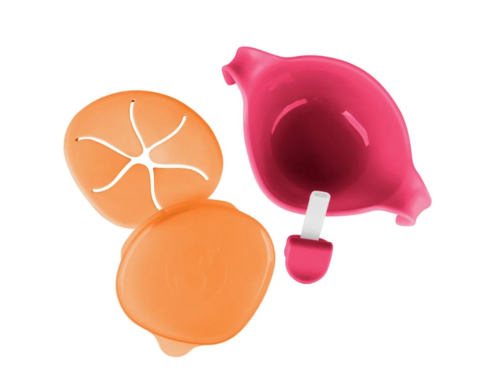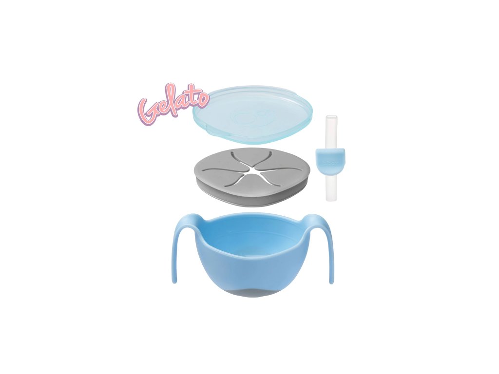 S mističkou a brčkem je jídlo zábava! Je tak jednoduché jíst/pít cereálie s mlékem nebo polévku. Víčko s otvorem, které lze na mističku nasadit, nedovolí malým hroznům a piškotům, aby se rozkutálely po podlaze. A víčko dělá z této mističky bezva krabičku na cestování.