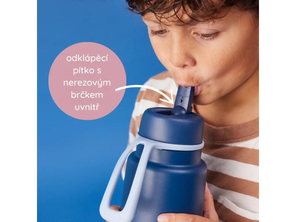 - Odklápěcí horní pítko pro pití s nerezovým brčkem uvnitř