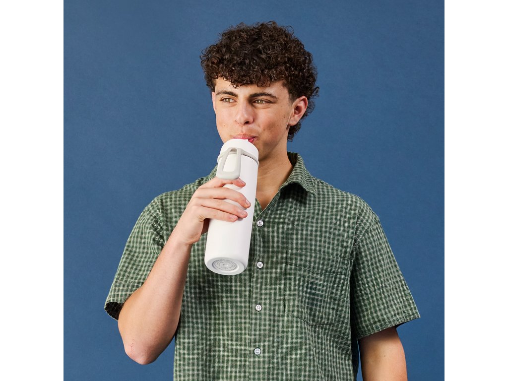 Odolná termolahev je navržena s důrazem na funkčnost a design a ocení ji děti, teenageři i dospělí. Moderní barvy a praktické provedení vás bude provázet každý den a lahev se stane nezbytným každodenním doplňkem. Díky velké silikonové rukojeti a velikosti vhodné i do postranní kapsy batohu ji můžete mít vždy po ruce a mít pod kontrolou svůj pitný režim. Skvěle pasuje do většiny držáků nápoje v autě.