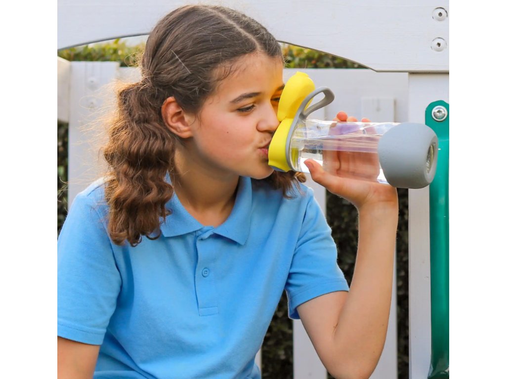 Rodiče ocení hygienické uzavírání víčka. Lahvička, pokud je zavřená, je netekoucí. Flexibilní silikonové držátko je pro děti skvělé, ať už nesou lahvičku do školy nebo na trénink. Lahvička je vyrobena z Tritanu™, je tedy lehká a odolná. Minimum komponentů umožňuje lahev snadno čistit.