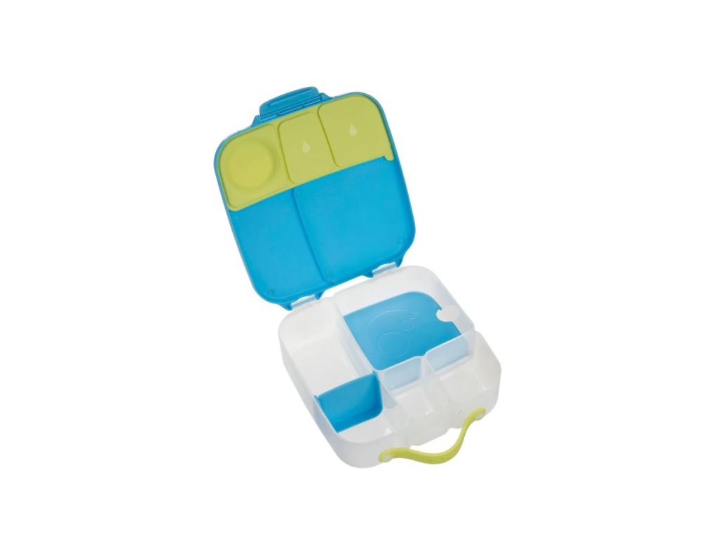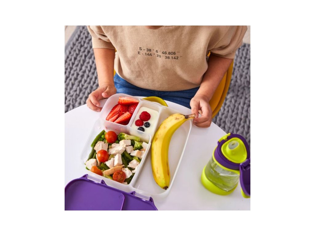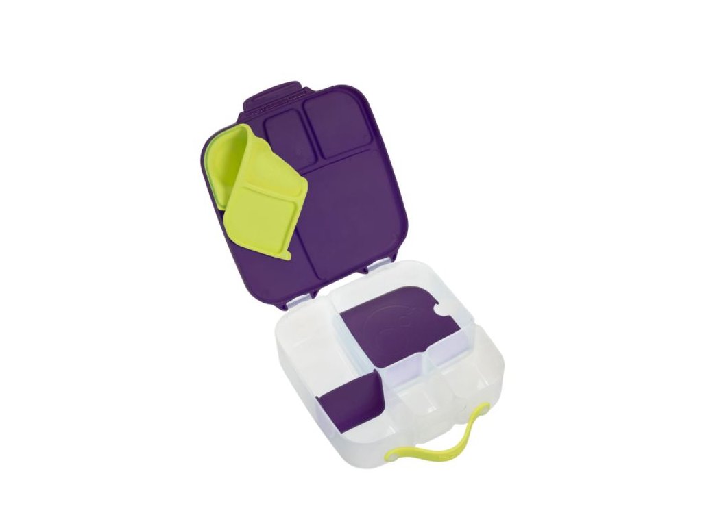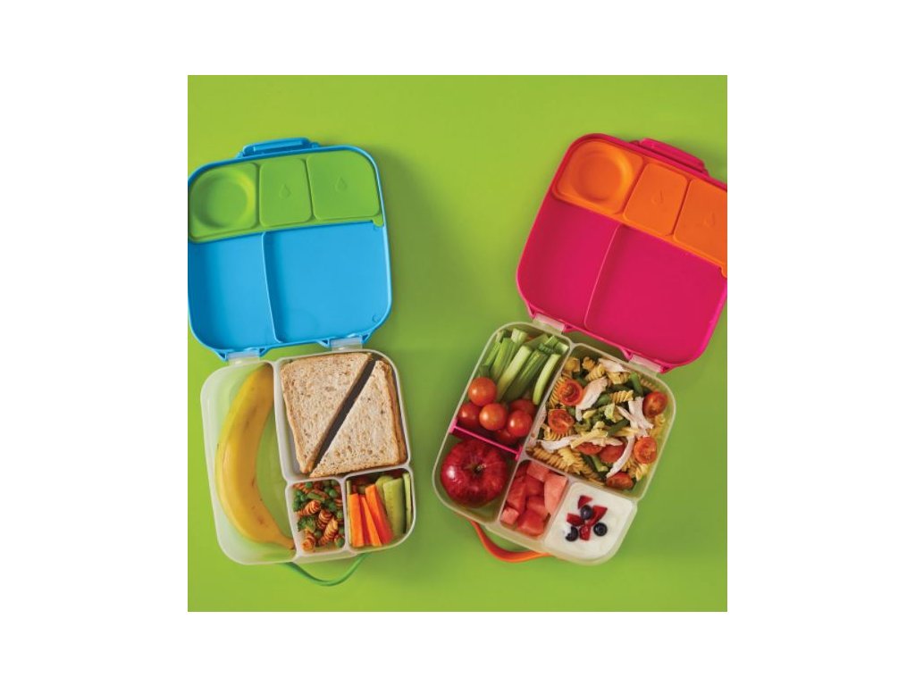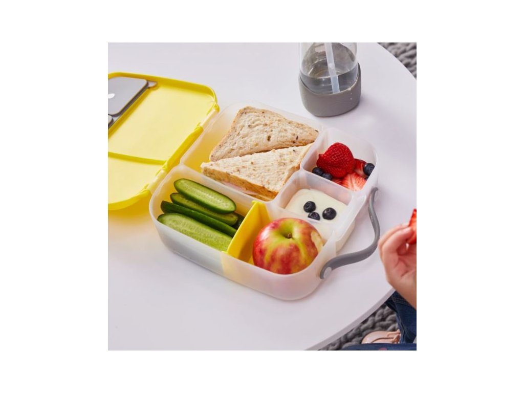 Krabička na svačinu, do které se vejde úplně všechno! Děti si během dne rády vybírají z dobrot, které jim připravíte. A tak b.box navrhl variabilní lunchbox, do kterého zabalíte nespočet různých druhů svačinek. Najdete zde oddělení pro půl krajíce chleba nebo sendvič, pod pohyblivým víčkem je ukrytý chladivý polštářek, který udrží tuto dobrotu déle čerstvou. Pokud pohyblivé víčko odstraníte, máte rázem dostatečně velký prostor pro těstoviny nebo salát. Naprosto jedinečné zpracování víčka krabičky s elastickým kroužkem umožní vložit do krabičky celé jablko! Silikonové dvojité víčko pak umožní skladovat v menších odděleních ovoce nebo jogurt (nikoli tekutity). Některé vitřní "přepážky" jsou vyjímatelné a nastavitelné, takže si tento svačinový box přestavíte podle svých chutí a potřeb. Do lunchboxu se vejde i wrap nebo banán.