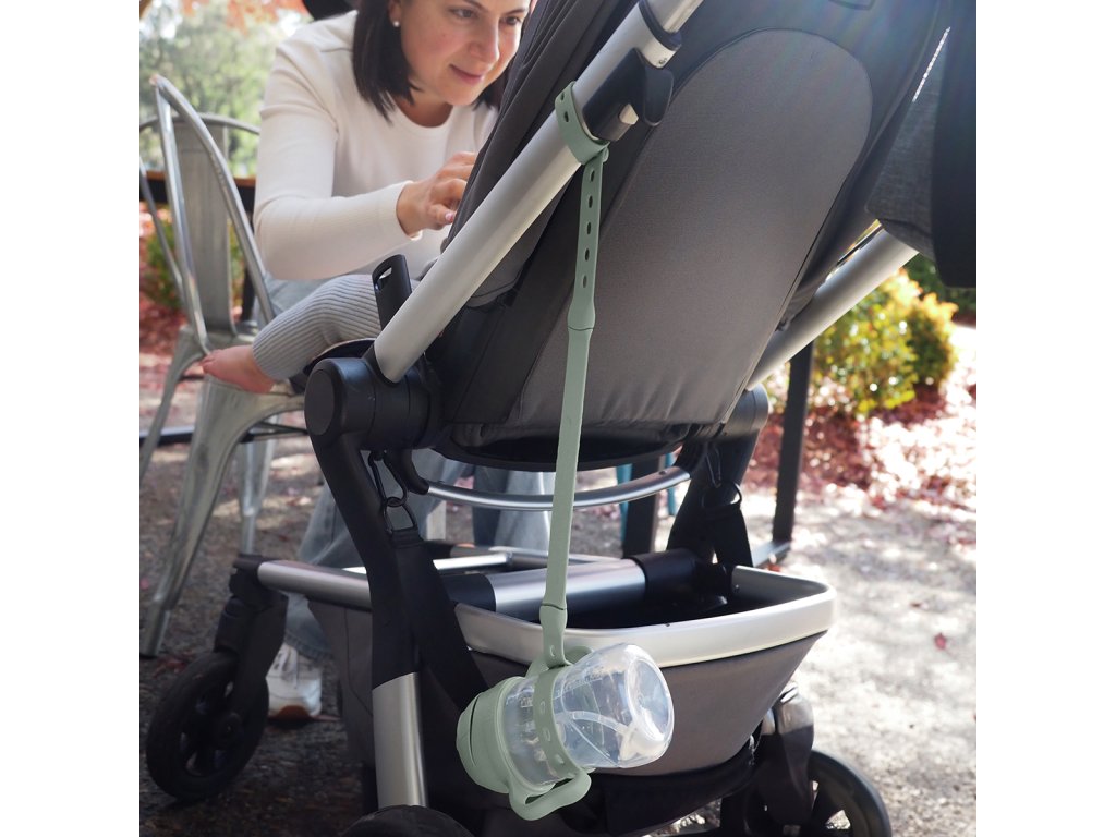 Stačí připevnit jeden konec ke kočárku a druhý k oblíbené hračce, hrníčku nebo lahvičce. Nastavitelný pásek lze použít na všechny dětské nezbytnosti. Pásek můžete připevnit i k jídelní židličce a nechat dítě zkoumat prostor kolem sebe házením věcí na zem. Pro větší bezpečí je pásek snadno rozpojitelný na tři části.