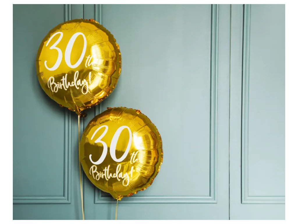 🎈 Fóliový balónek – Narozeniny 30 let, zlatý (45 cm)