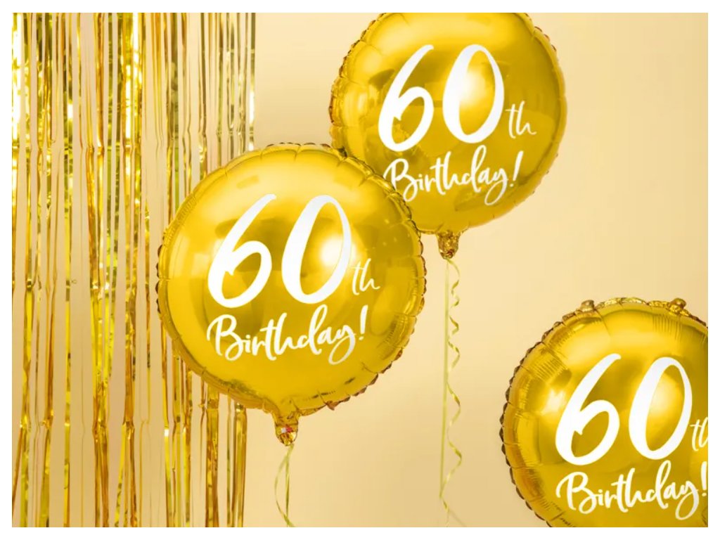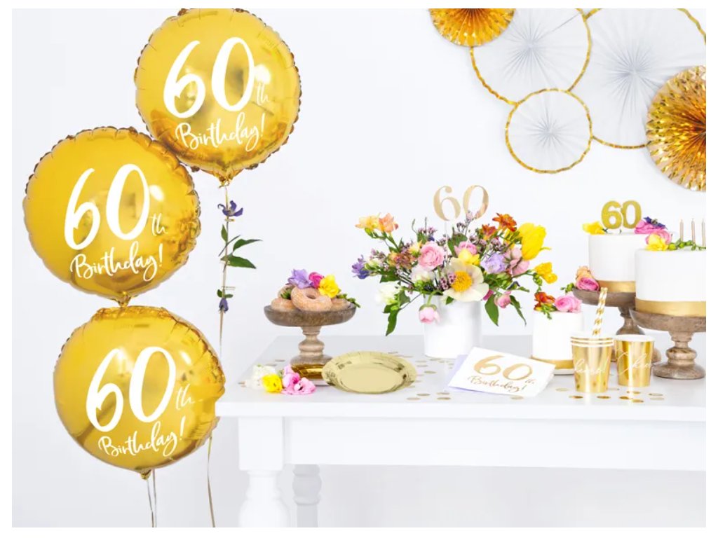 Klíčová slova: balónek 60 let, fóliový balónek narozeniny, zlatý balónek 45 cm, dekorace na 60 narozeniny, balónek padesátiny