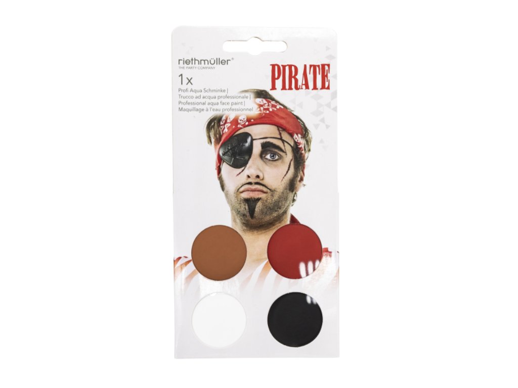 Chystá se vaše ratolest na maškarní bál, nebo plánujete dobrodružnou pirátskou výpravu na zahradě? S touto sadou barev na obličej vytvoříte dokonalou masku drsného kapitána i neohroženého námořníka. Díky vybrané kombinaci barev snadno namalujete věrohodné strniště, jizvy, pirátskou pásku přes oko nebo rudý šátek.