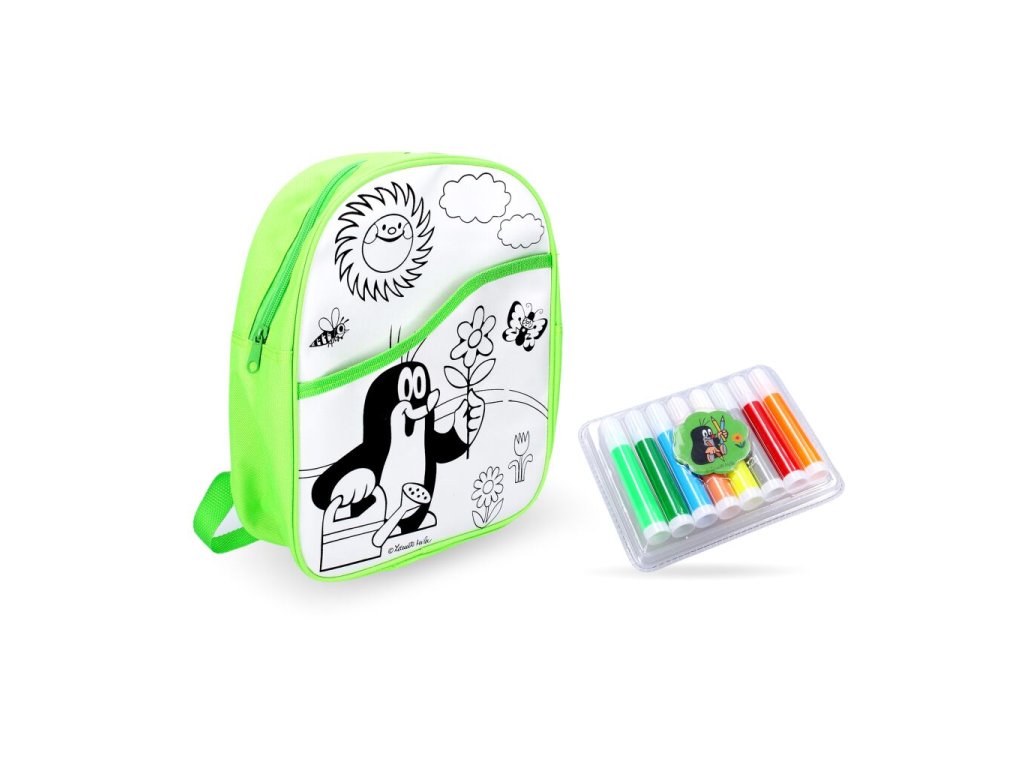 🎨 Rozvíjejte kreativitu a fantazii s vymalovávacím batohem Krteček! Tento barevný batoh v zelené barvě můžete sami vybarvit a vytvořit tak unikátní originální doplněk 🌟.