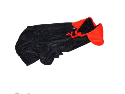 Plášť Upír / Čert / Čaroděj je černý s červeným límcem a červeným okrajem. Délka 125 cm, šířka 90 cm, vyroben z polyesteru. Ideální pro Halloween, karneval nebo tematické oslavy.