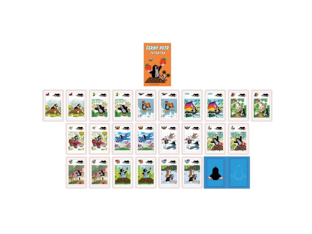 Užijte si hodiny zábavy s Černým Petrem Krteček – Zvířátka. Tato karetní hra obsahuje 32 karet s veselými motivy zvířátek a Krtečka a přehledný návod, díky kterému se hru naučí snadno i nejmenší děti.