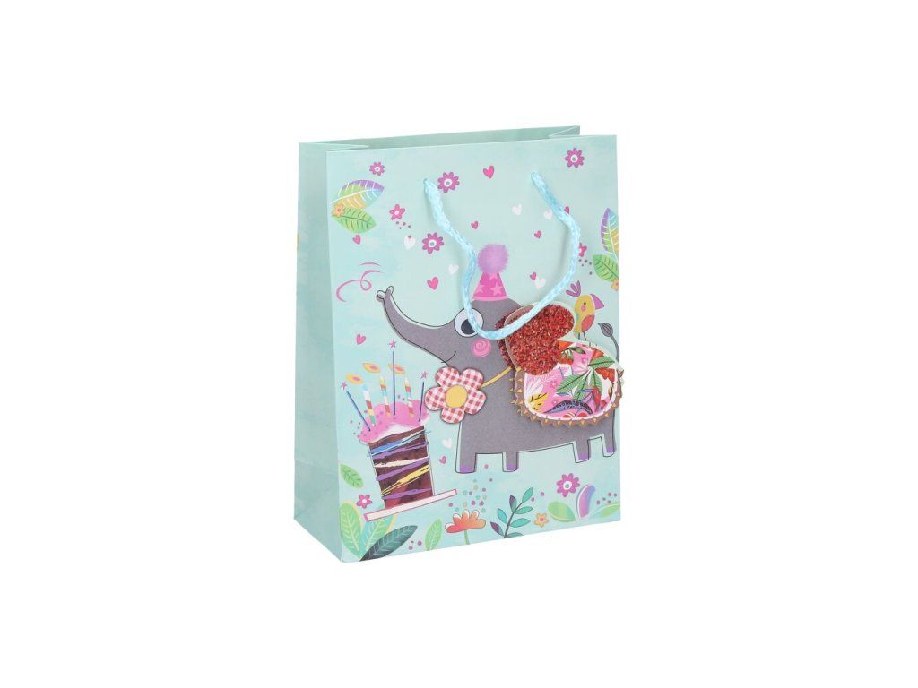 Oživte každé darování s touto hravou dárkovou taškou Slon S, která zaujme svým veselým designem a kvalitním provedením. Taška je vyrobena z pevného papíru, díky čemuž je dostatečně odolná i pro větší nebo těžší dárky.