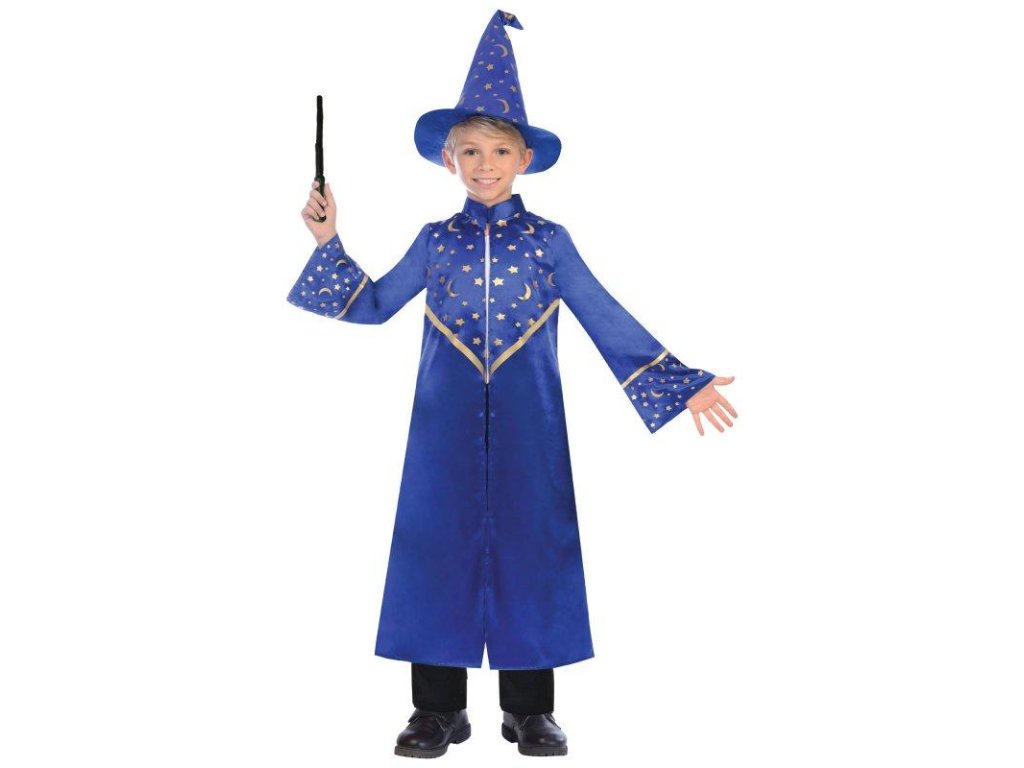 🧙♂️✨Dětský kostým Čaroděj 3 ks od značky Amscan je perfektní volbou pro všechny malé kouzelníky a kouzelnice! 🧙♂️✨ Kostým obsahuje hábit, klobouk a hůlku, takže vaše dítě bude mít kompletní kouzelnický vzhled. 🪄🎩