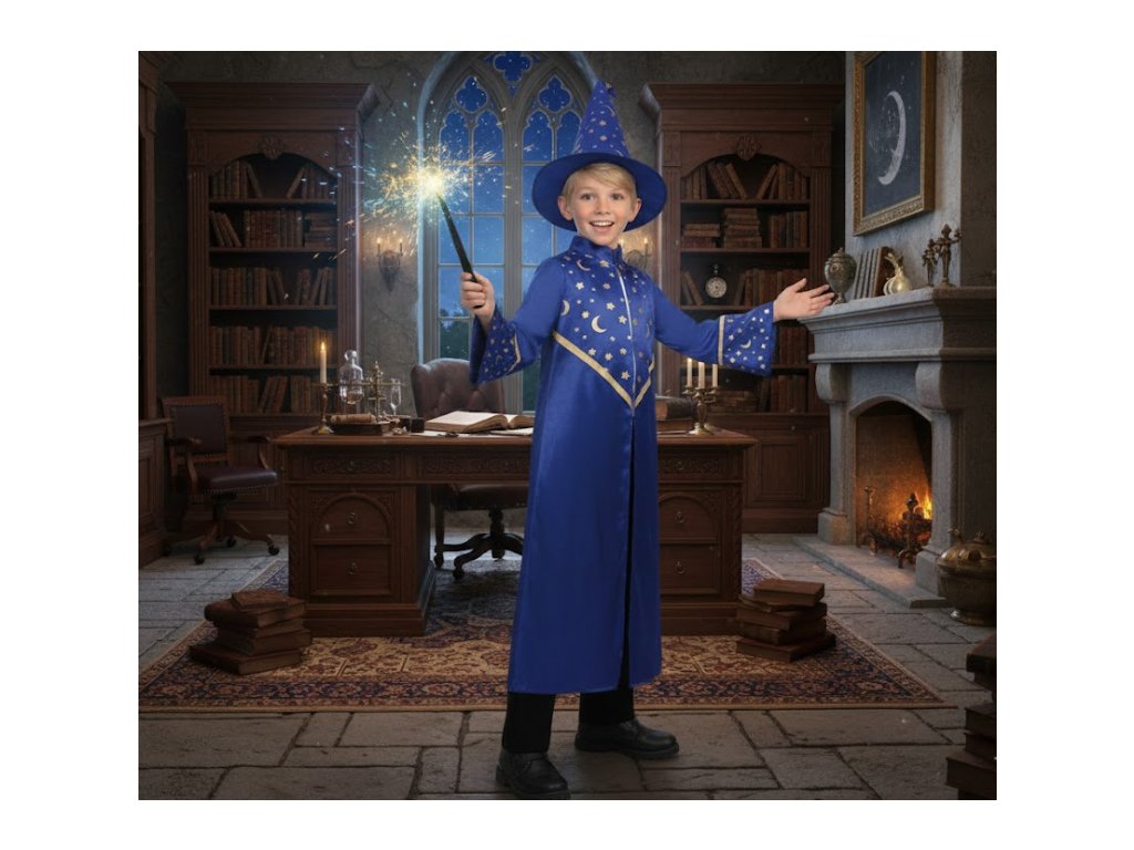 Ideální na Halloween, karneval, maškarní nebo tematické párty, tento kostým přinese spoustu zábavy a fantazie. 🌙⭐ Díky pohodlnému střihu je vhodný pro děti, které chtějí čarovat a bavit se bez omezení pohybu.