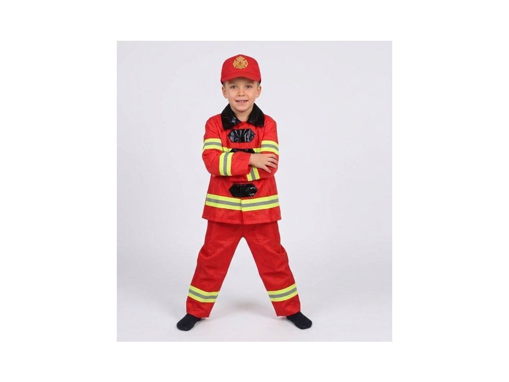 Sada dětského kostýmu hasiče je vhodná pro děti o velikosti 110–120 cm.