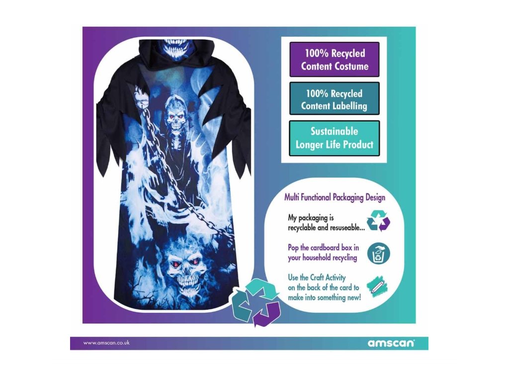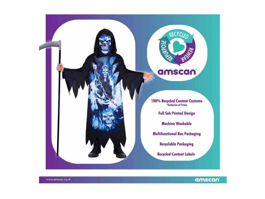Proměňte se v nepřehlédnutelnou postavu s dětským kostýmem Smrtka neonová, který zaujme svým tajemným a výrazným vzhledem. Kostým obsahuje dlouhý hábit a masku, díky nimž bude převlek kompletní a efektní.