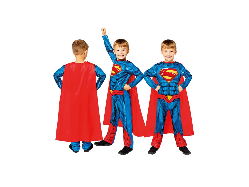 Typický modro-červený design, výrazné logo „S“ na hrudi a ikonický červený plášť dodávají kostýmu autentický vzhled, který okamžitě upoutá pozornost 🎉 Ať už se chystáte na karneval, narozeninovou oslavu, školní besídku nebo domácí hraní, Superman je vždy správná volba!