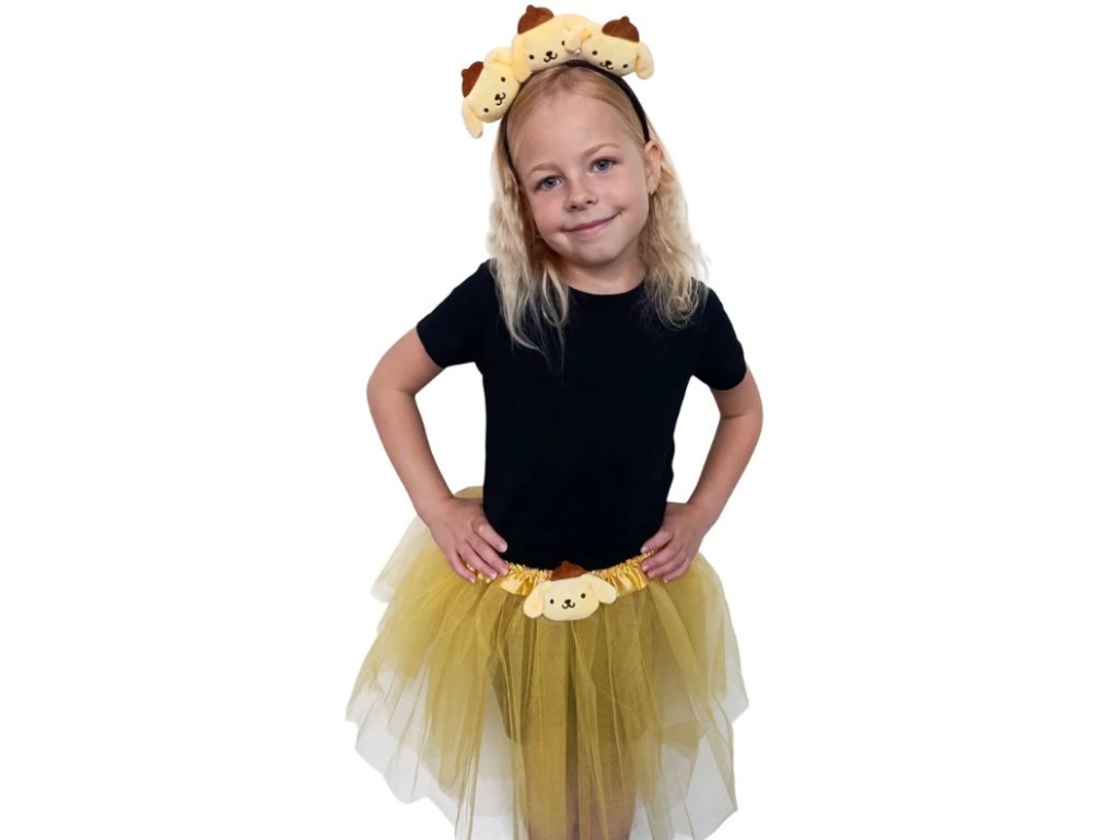 Dětský set na karneval Pejsek ve stylu Sanrio Pompompurin – 2 ks obsahuje veselou čelenku a sukýnku.