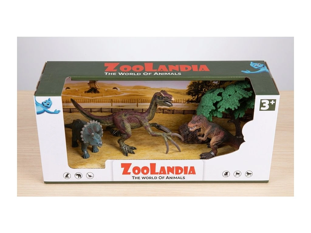 Objevte fascinující svět prehistorie se ZooLandia setem dinosaurů! Největší figurka představuje Therizinosaurus – neobvykle vyhlížejícího teropodního dinosaura s obrovskými drápy (až přes 1 metr) a pažemi dlouhými asi 2,4 až 3,5 metru, který žil před cca 70 miliony let v období svrchní křídy na území dnešního Mongolska. Je pravděpodobné, že i Therizinosaurus měl části těla opeřené, podobně jako jeho blízký, ale starší příbuzný Beipiaosaurus inexpectus.