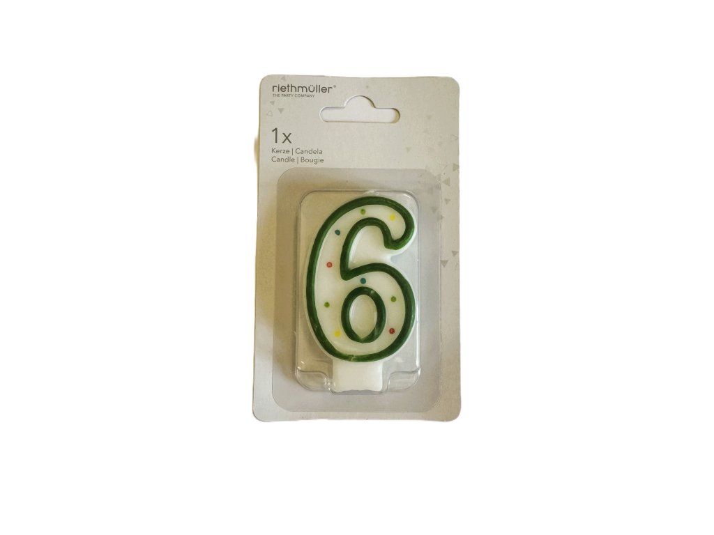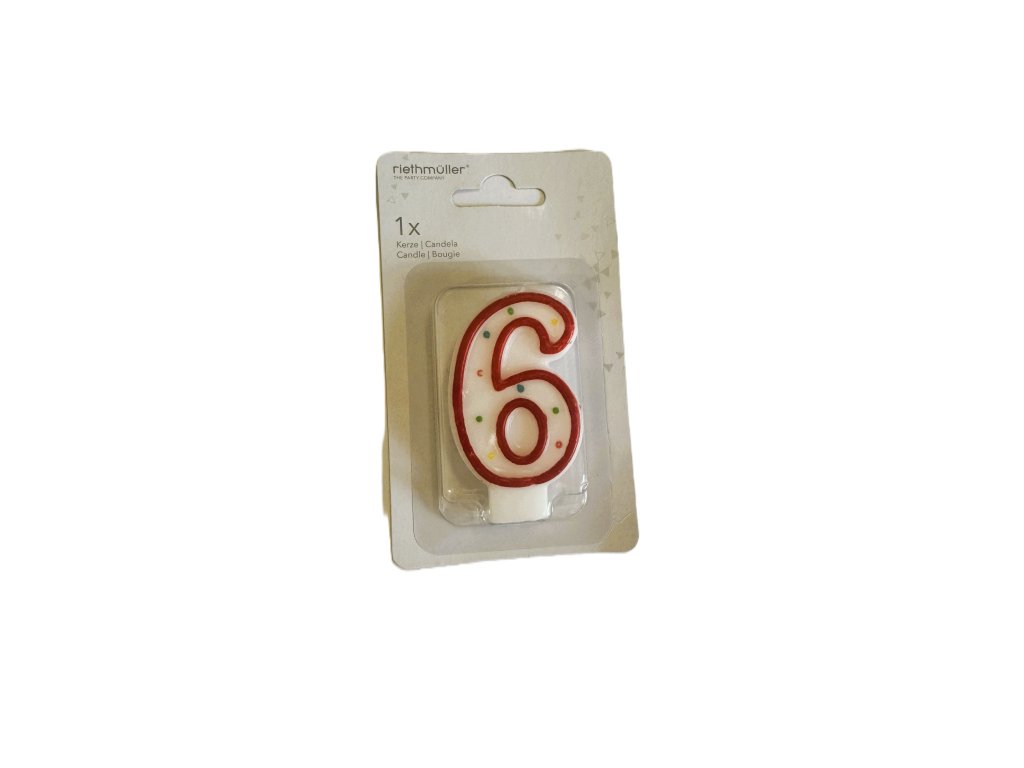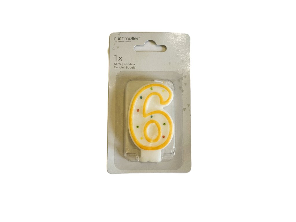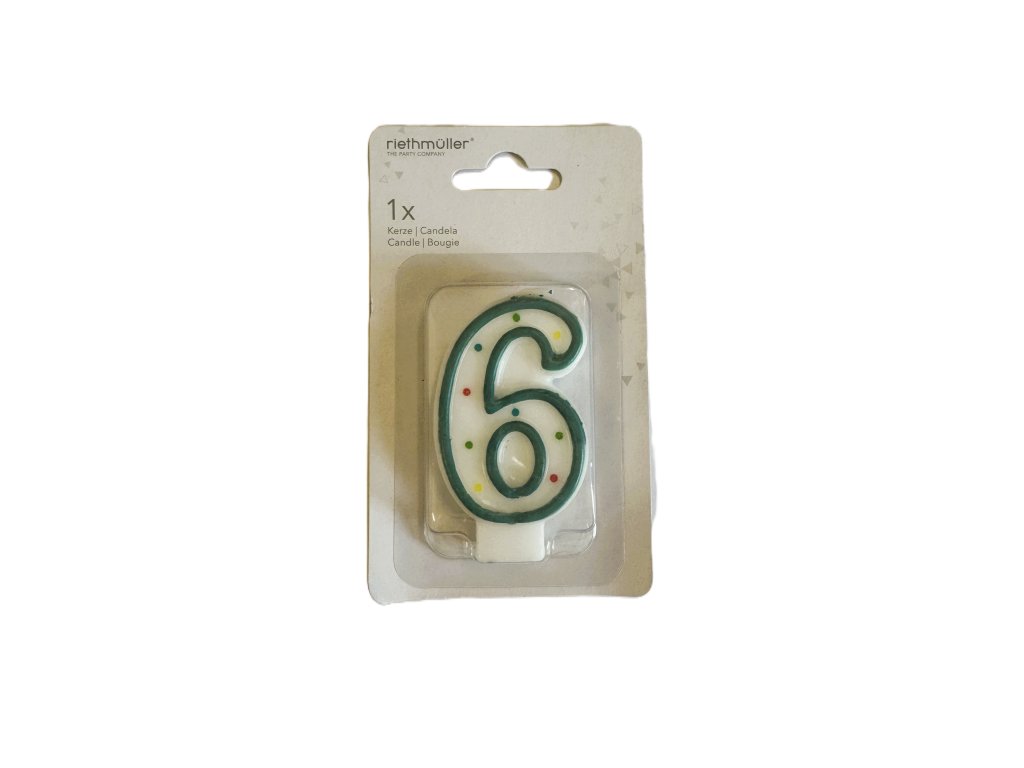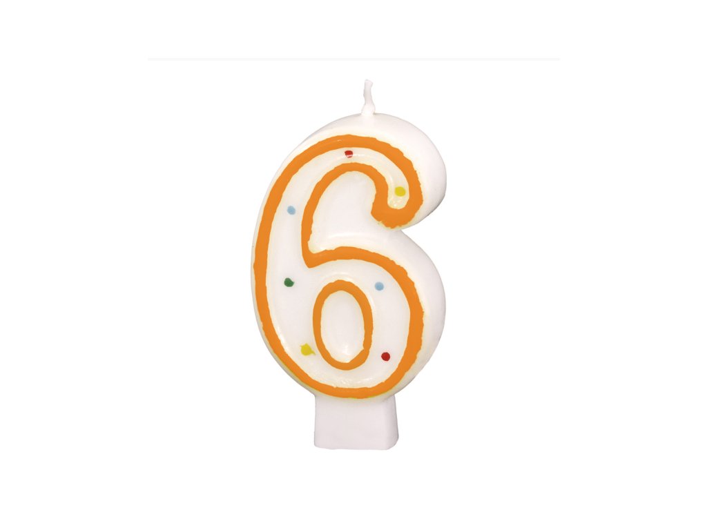 Oslavte šesté narozeniny stylově! Dortová svíčka číslo "6" s barevnými puntíky je ideálním doplňkem pro narozeninový dort. Díky veselému designu se hodí pro dětské oslavy a rozzáří každý moučník.