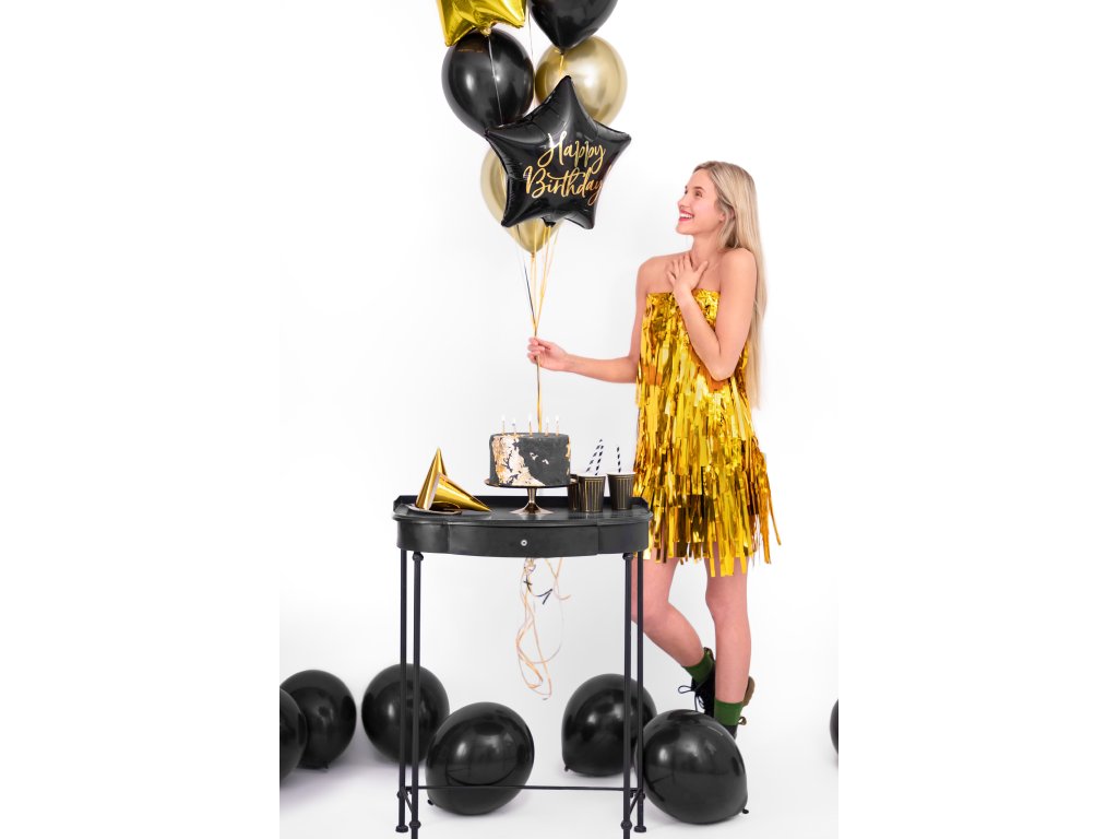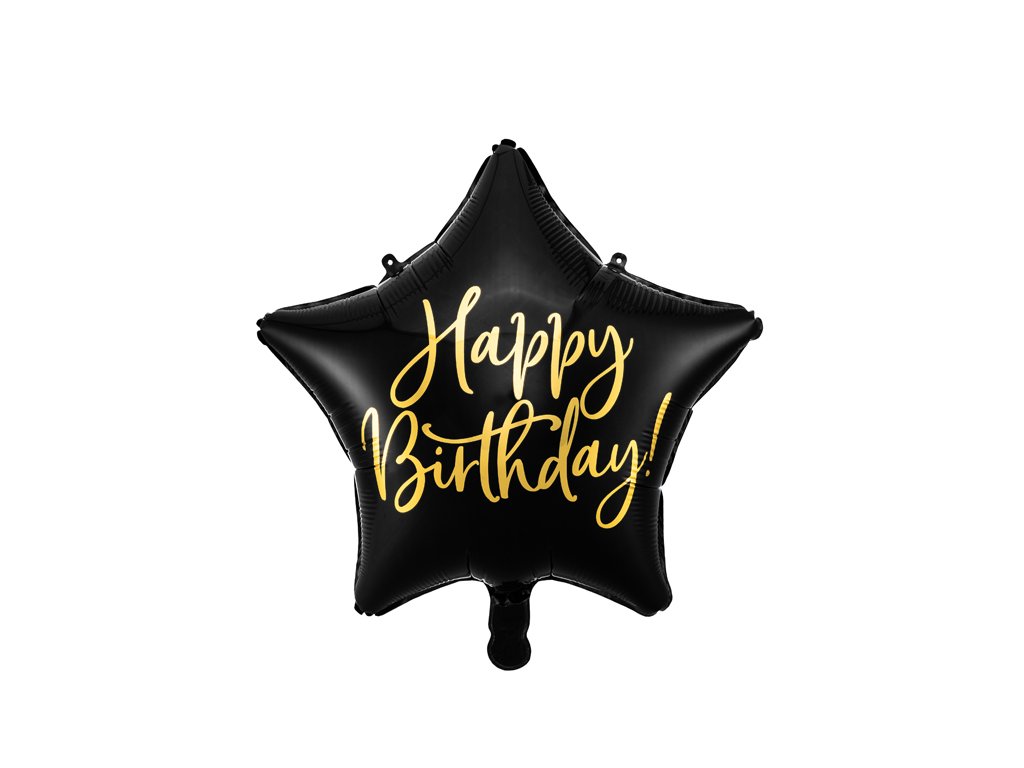 ⭐ Oslavte narozeniny stylově s fóliovým balónkem Happy Birthday ve tvaru hvězdy! Tento balónek o rozměru 40 cm má elegantní černý podklad a zlatý nápis, který dodá vaší oslavě luxusní a slavnostní vzhled 🎉✨.