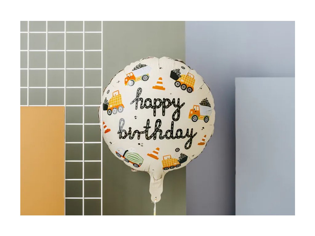 🚜🎉 Připravte oslavu malého stavitele s fóliovým balónkem Happy Birthday – Stavební stroje! Tento balónek po nafouknutí měří 35 cm a zobrazuje barevné stavební stroje s nápisem Happy Birthday v béžovo-hnědých tónech, které dodají narozeninové párty veselou a hravou atmosféru ✨🎈.