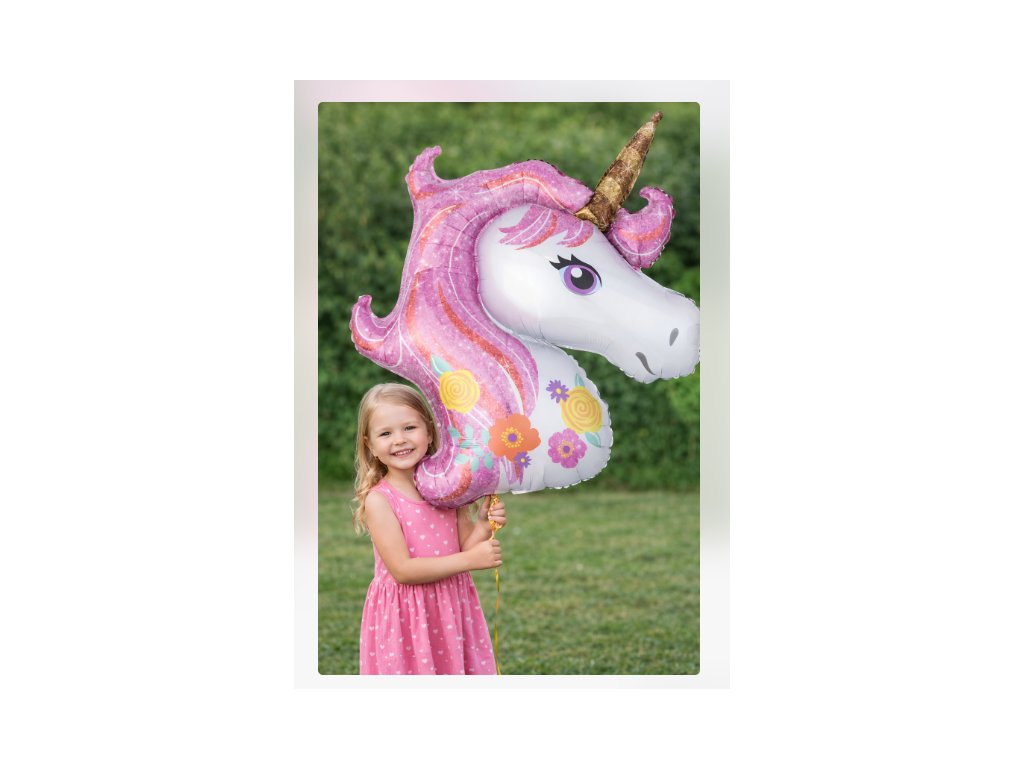 Kouzelná výzdoba pro každou malou princeznu! 🦄 Tento velký fóliový balónek ve tvaru roztomilé hlavy jednorožce okamžitě promění oslavu v pohádkovou párty. Díky třpytivé růžové hřívě a jemným květinám se stane nepřehlédnutelným doplňkem i krásnou rekvizitou na focení.