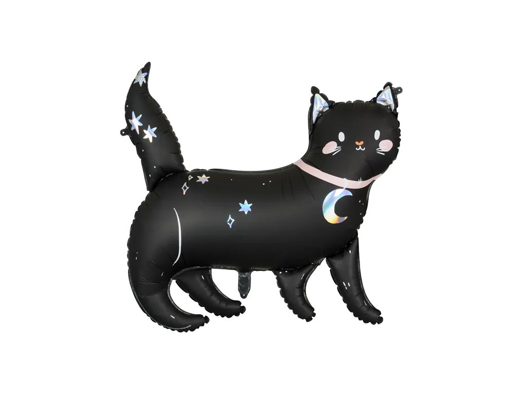 🌙🖤 Připravte dívčí večerní párty nebo halloweenskou výzdobu s fóliovým balónkem Kočka černá! Tento balónek po nafouknutí měří 81 × 80 cm a zobrazuje noční kočičku s růžovým obojkem a zavěšeným metalickým měsícem, která dodá oslavě magickou a tajemnou atmosféru 🎃✨.