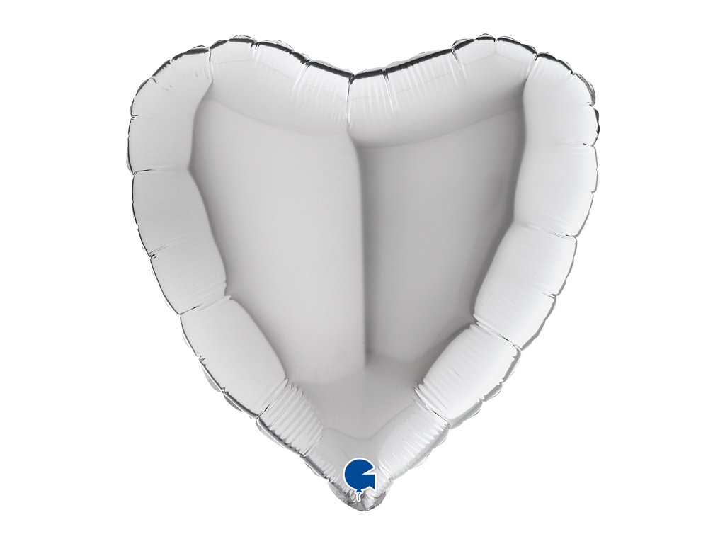 Foliový balónek ve stříbrné barvě ve tvaru srdce, výška 46cm. Vhodné pro nafukování heliem i vzduchem.