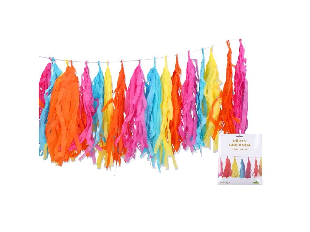 Barevná střapcová girlanda o délce 5 metrů je skvělým doplňkem pro každou oslavu či párty.