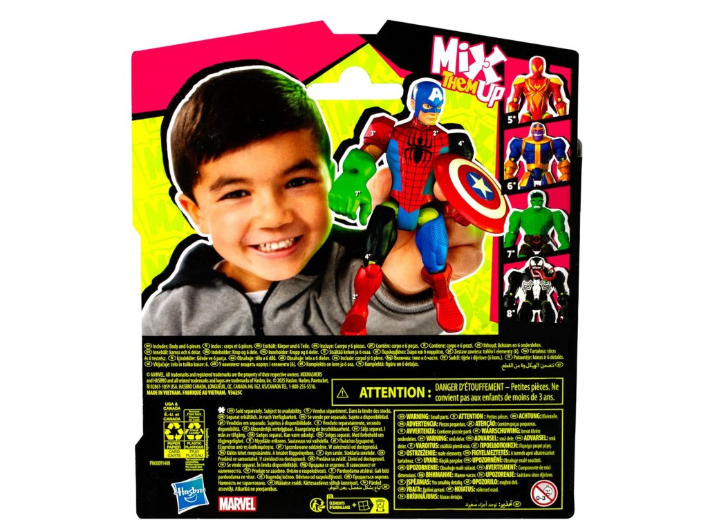 I ti největší superhrdinové někdy potřebují pomoc – a někdy i nové ruce, nohy nebo třeba pěst Black Panthera! Se sběratelskou akční figurkou Marvel MixMashers Captain America mohou děti i fanoušci Marvelu vytvářet vlastní, jedinečné superhrdiny. Tato 12cm figurka má 16 připojovacích bodů a univerzální konektory, které umožňují snadné spojování dílů napříč celou řadou MixMashers. Vyměnitelné části jsou kompatibilní, odolné a připravené na miliony bláznivých kombinací. Součástí balení je ikonický štít Captain America i fialový silový dráp Black Panthera – ideální pro tvorbu originálních hrdinů. Vyrobeno z kvalitního plastu, baleno v blistru. Vhodné pro děti od 4 let – perfektní jako dárek nebo sběratelský kousek pro fanoušky Marvel komiksů i filmů. Výška figurky: 12 cm Rozměry balení: 20,3 x 17,8 x 3,8 cm Věk: 4+ Kompatibilní s ostatními figurkami MixMashers Klíčová slova: Marvel MixMashers, Captain America figurka, akční figurka pro děti, sběratelské Marvel hračky, kombinovatelné figurky, hračka 4+, Marvel postavičky, kreativní hraníDoplňkové parametry
