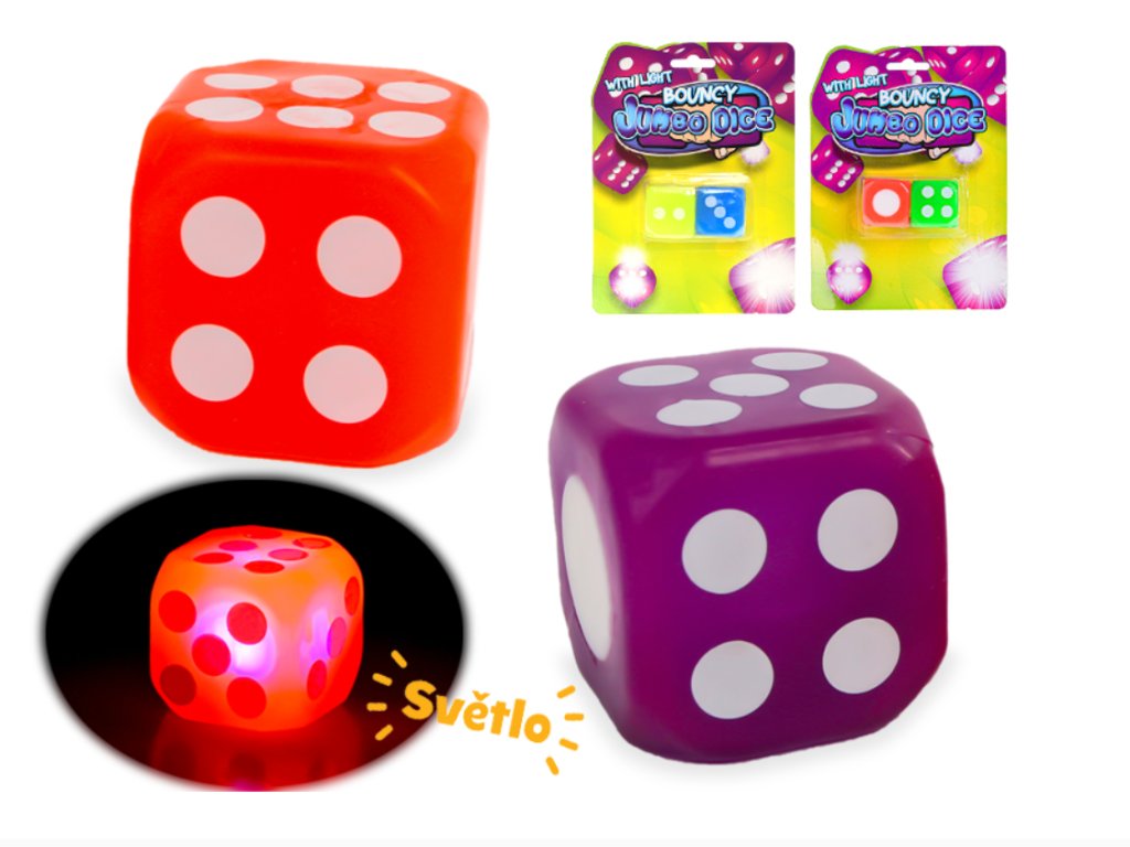 Hrací kostka Jumbo 3,6cm na baterie se světlem 3barvy
