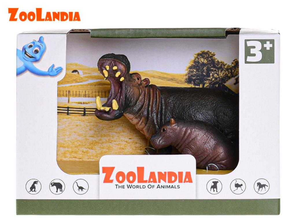 Hroch s mládětem ZooLandia představuje realisticky zpracovanou figurku afrického hrocha, jednoho z nejmohutnějších suchozemských savců. Hroch je dokonale přizpůsoben životu ve vodě – dokáže se potopit i na více než 10 minut, přičemž má uzavřené nozdry. Většinu dne tráví ve vodě, kde mu nad hladinou vyčnívají oči, uši a nozdry, což mu pomáhá regulovat tělesnou teplotu.