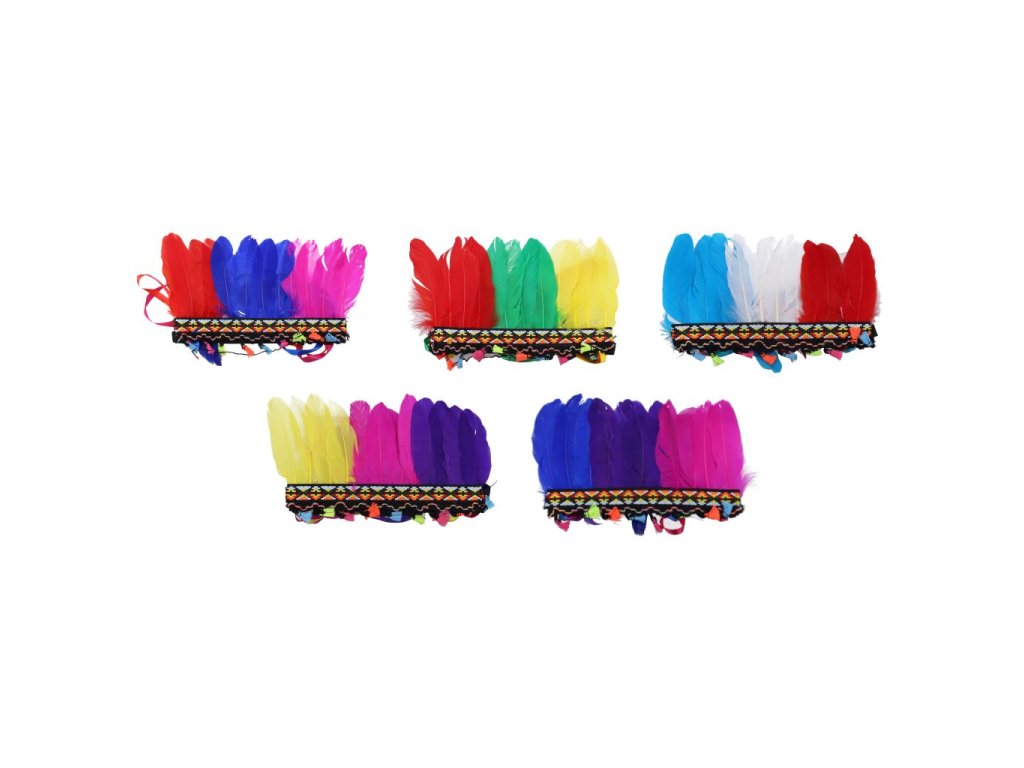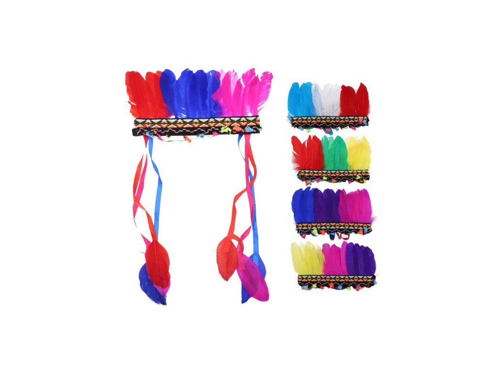 🪶 Indiánská čelenka – mix barev je skvělým doplňkem ke kostýmu malého i velkého indiána. Čelenku tvoří ozdobná stužka s barevnými třásněmi a pravými barvenými pírky, které dodávají autentický vzhled, doplněk k dětskému kostýmu.