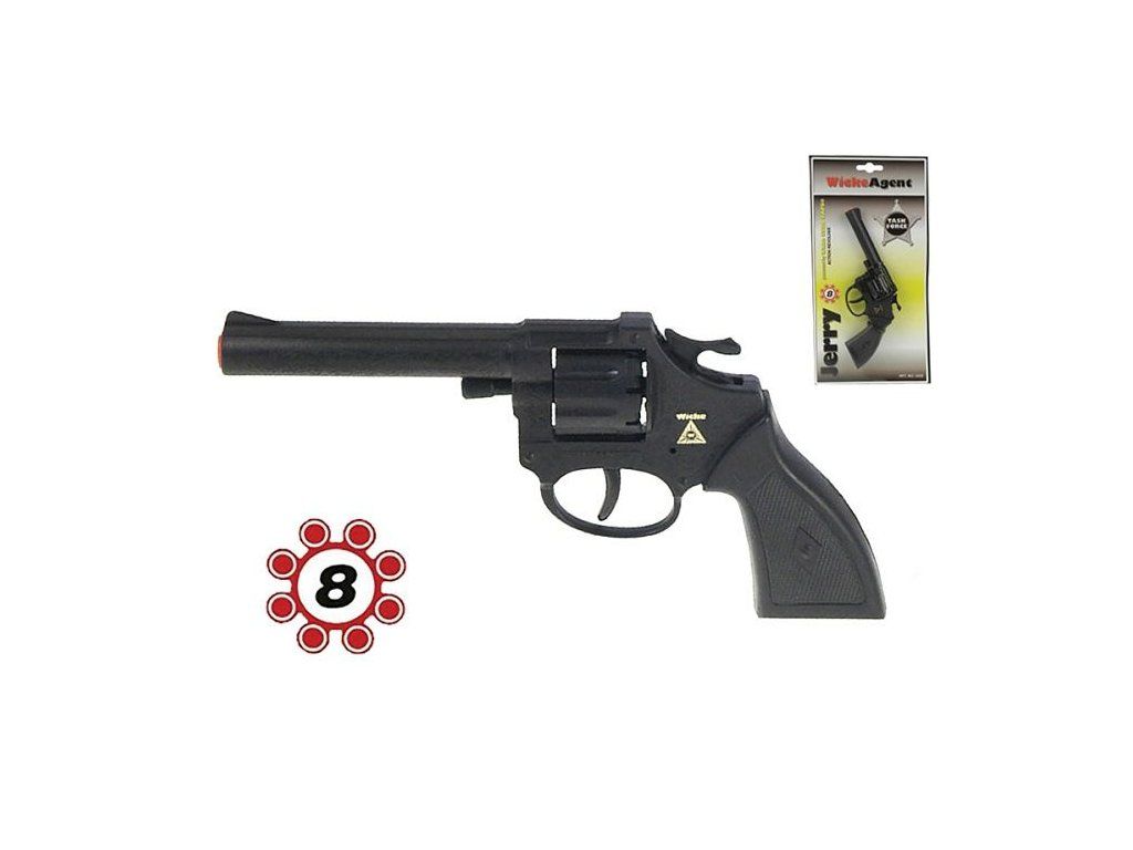 Kapslová pistole Jerry v designu klasického šerifského revolveru je ideální hračkou pro děti, které milují dobrodružství. Díky délce 19 cm padne skvěle do ruky a její lehké provedení z kvalitního plastu zajišťuje pohodlné a bezpečné používání.