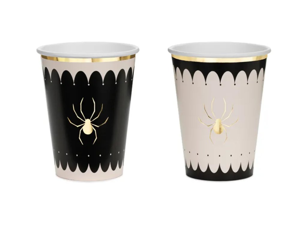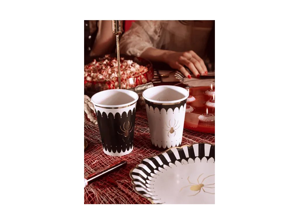 🕷️ Oživte svou párty s papírovými kelímky Pavouk! Každý kelímek pojme 400 ml nápoje a je zdoben poutavým zlatým pavoukem, který dodá oslavení hravý a tematický nádech ✨.