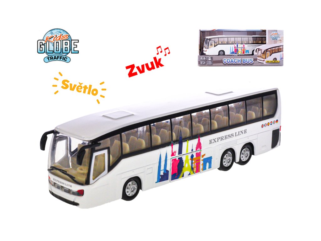 Kids Globe Traffic autobus 19cm kov na zpětný chod na baterie se světlem a zvukem
