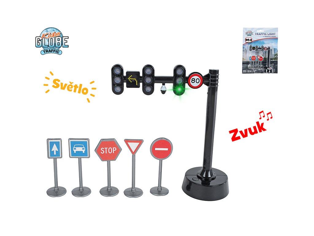 Kids Globe Traffic sada dopravních značek + semafor 11,5cm na baterie se světlem a zvukem