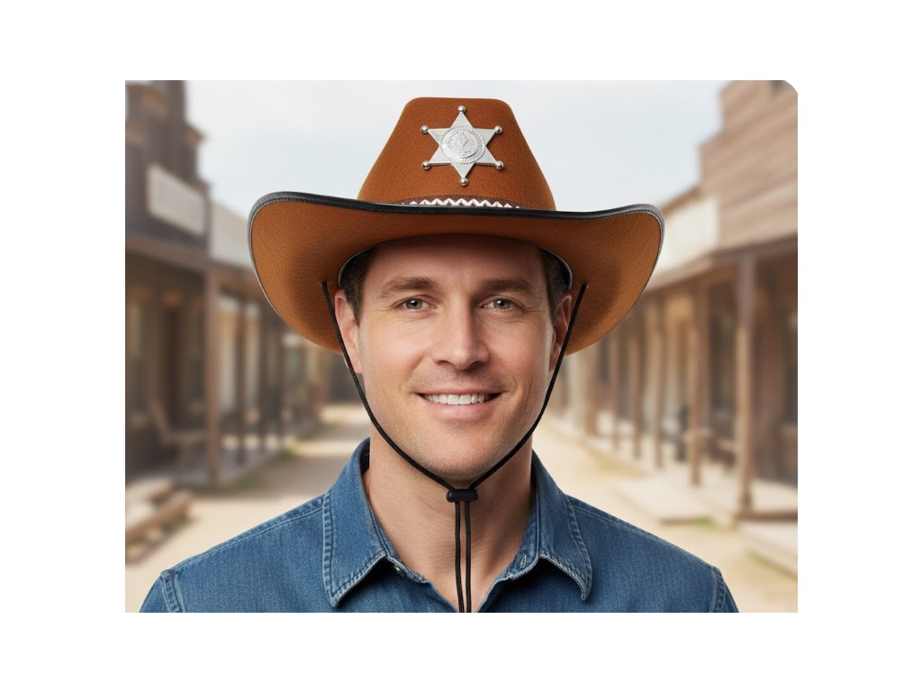 Staňte se pravým šerifem Divokého západu 🤠⭐ Tento kvalitně zpracovaný dospělý šerifský klobouk v hnědé barvě skvěle doplní každý westernový kostým a dodá mu autentický vzhled.