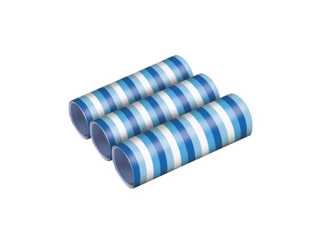 Balení obsahuje 3 ruličky ve stylové kombinaci světle modré, středně modré, tmavě modré a bílé barvy, které se skvěle doplňují. Díky velikosti 0,7 x 400 cm vytvoříš dlouhé a působivé barevné pruhy, které se krásně vynímají ve vzduchu i na stole. Serpentýny jednoduše rozvineš a rozstřihneš dle potřeby. Skvěle se hodí pro dekoraci místnosti, balení dárků nebo na karneval.