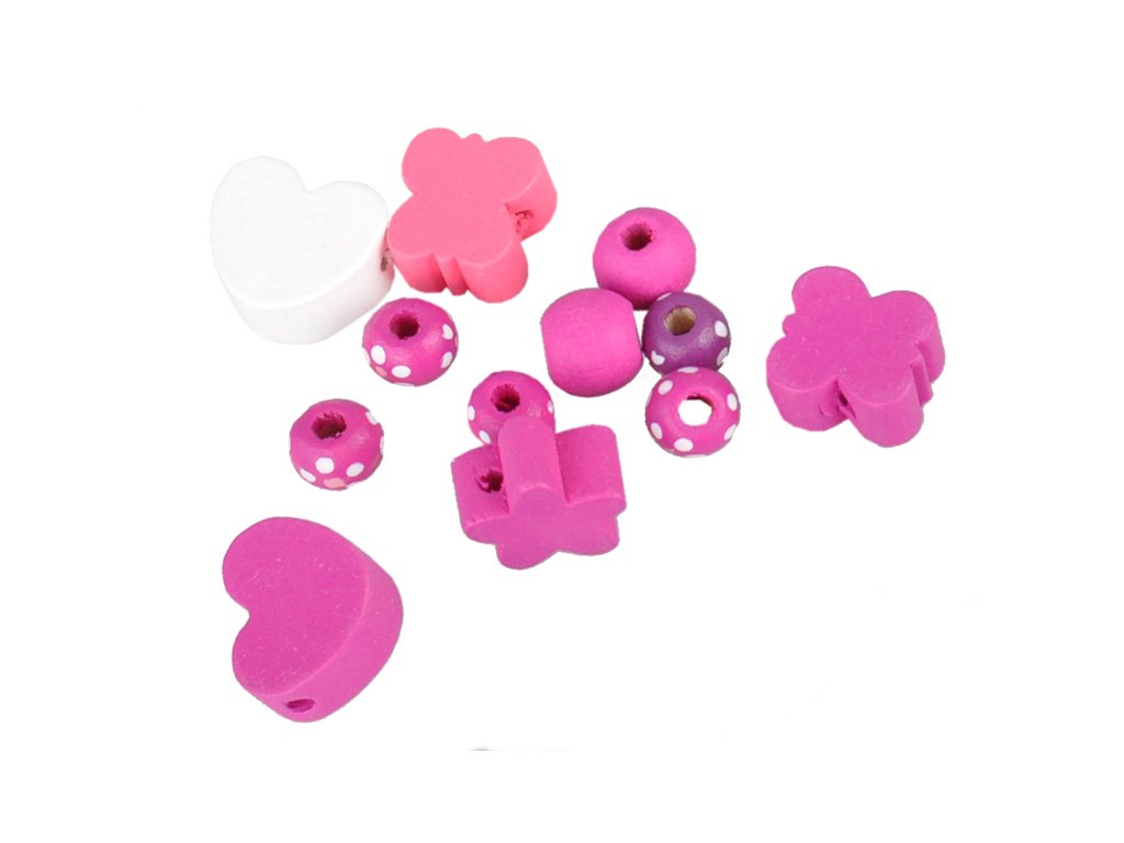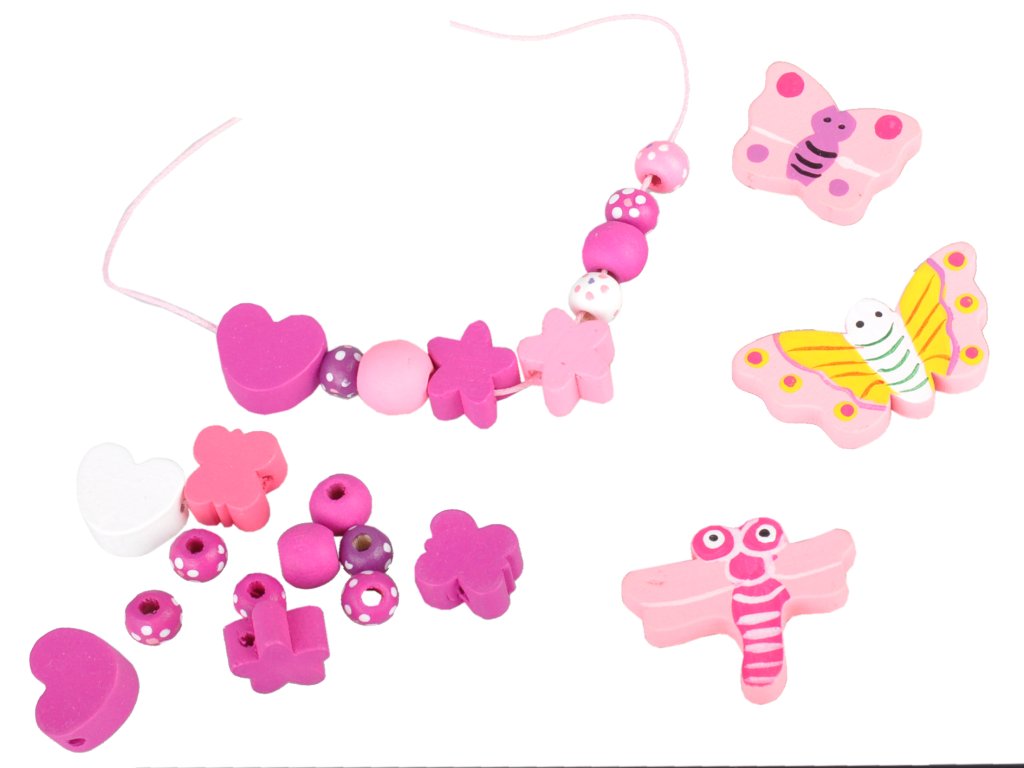 Korálky navlékací dřevěné růžové v krabičce