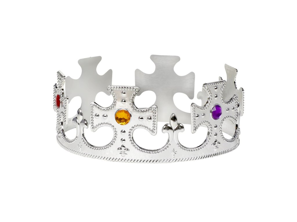 Vlastnosti produktu: Korunka pro krále; Barva: stříbrná; Materiál: postříbřený plast; Značka: Amscan; Zdobení: jemné kamínky; Výška: 7 cm; Lehká a pohodlná; Nastavitelný obvod; Dodání v pásu se zapínáním; Vhodná na karnevaly, oslavy, kostýmové a tematické party.