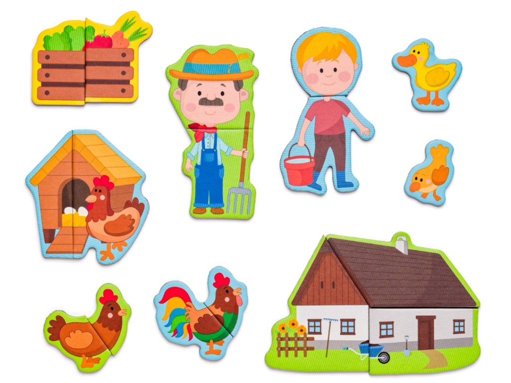 🧲 Mnoho magnetických dílků – zvířátka, traktor, farmář a další