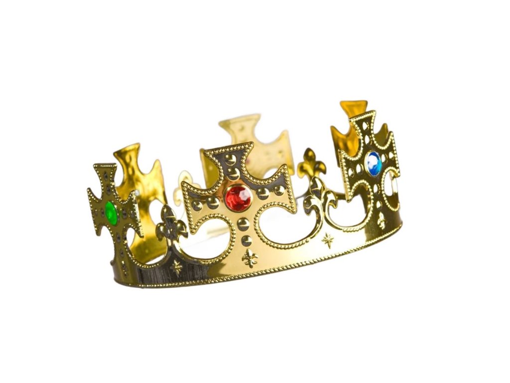 Vlastnosti produktu: Královská koruna; Barva: zlatá; Zdobení: jemné kamínky; Realistický design; Lehká a pohodlná; Materiál: Plast; Nastavitelné zapínání; Vhodná na karnevaly, oslavy, focení a party.