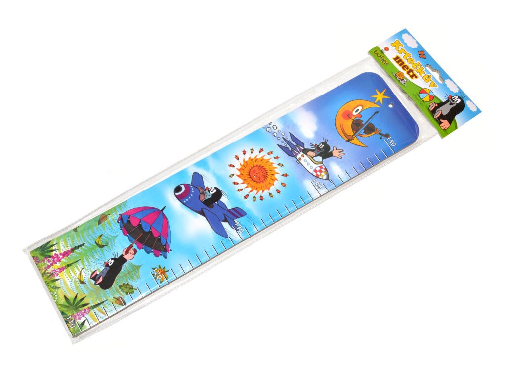Metr je zdoben obrázky oblíbeného Krtečka, díky čemuž se měření stává zábavou a motivuje děti sledovat svůj růst ✨.