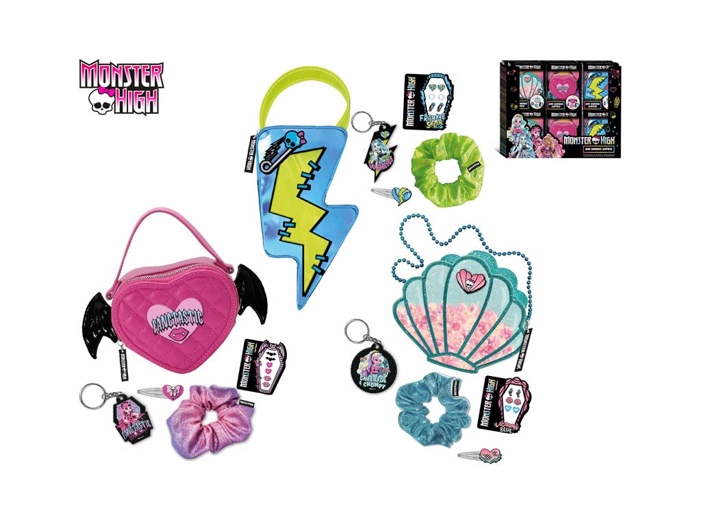 Stylová Monster High mini kabelka s doplňky potěší všechny malé fanoušky Monster High. Každá sada je inspirovaná jednou z ikonických ghoulek - Frankie Stein, Draculaurou nebo Lagoonou Blue - a přináší originální design i tematické doplňky. Každá kabelka obsahuje klíčenky, vlasové doplňky a drobné „ghoulské“ ozdoby, které ladí s osobností dané postavy.