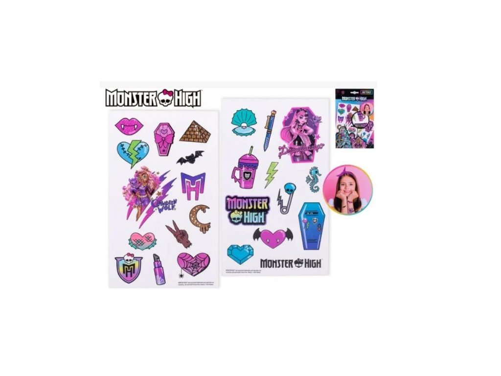 Sada tetování Monster High v papírové kartě potěší každého malého i velkého fanouška tohoto populárního světa strašidelných postav! V této sadě najdete rozmanité dočasné tetování s motivy Monster High, jako jsou ikonické postavy, loga a tematické symboly. Tetování se snadno aplikuje a je také jednoduše smývatelné, což z něj činí ideální doplněk pro dětské párty, Halloween, nebo tematické akce. Ať už je chcete použít k dočasné ozdobě pokožky nebo jako kreativní způsob vyjádření lásky k Monster High, tato sada jistě zaujme!